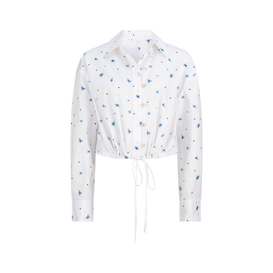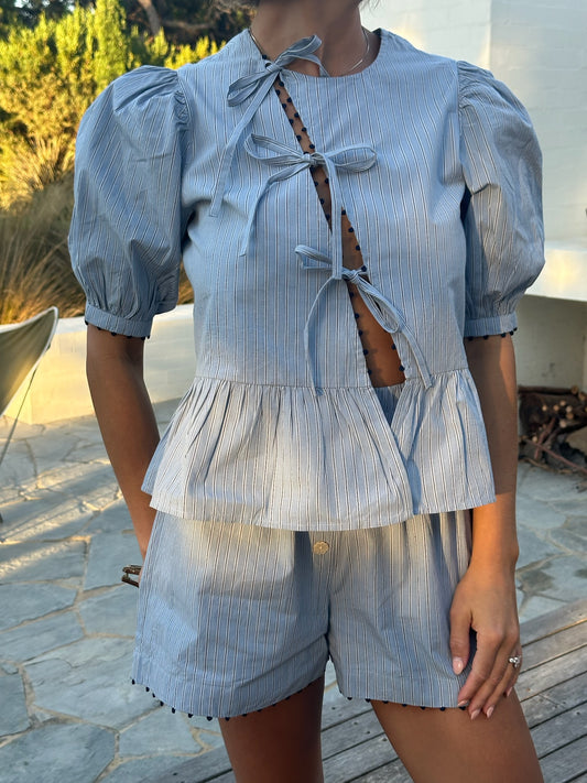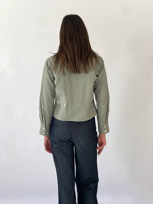 I love the cinch in tie detail as it creates shape but also keeps the baggy button up shirt style. It’s great to wear with multiple different bottoms for any occasion