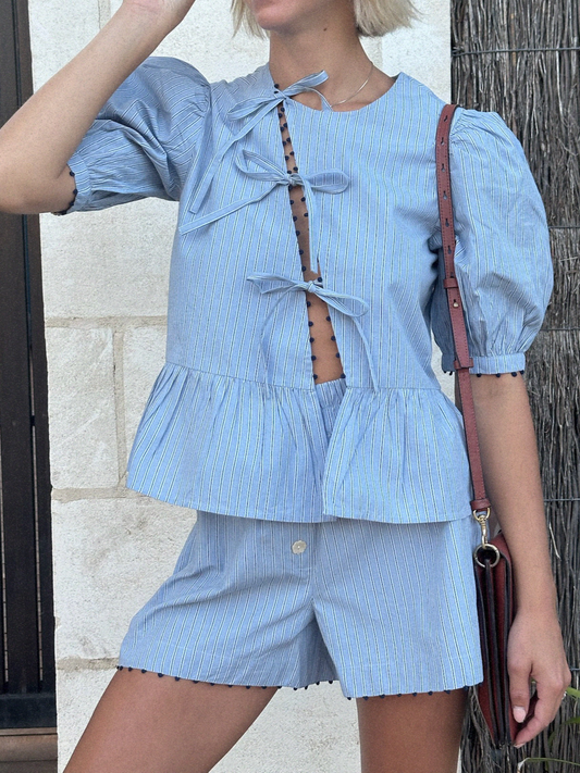 Lily Asymmetric Peplum Tie Blouse